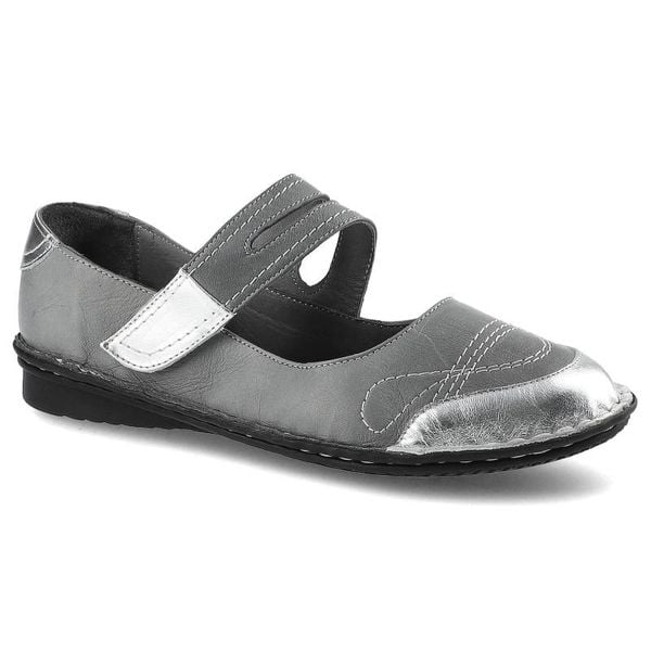 Półbuty damskie Lanqier, skórzane na płaskiej podeszwie i zapinane na rzep, szaro-srebrne, 40C1222