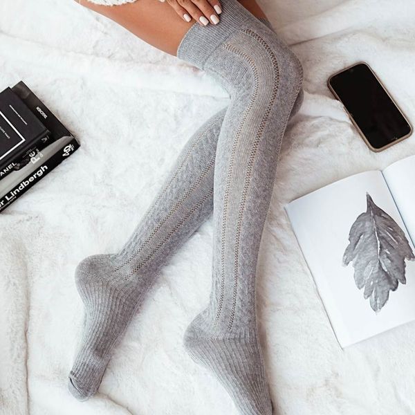 Szare ażurowe zakolanówki z warkoczem 223