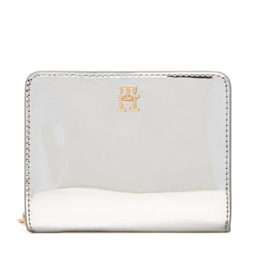 Portfel Tommy Hilfiger Med Za W/Flap Met AW0AW18037 Srebrny