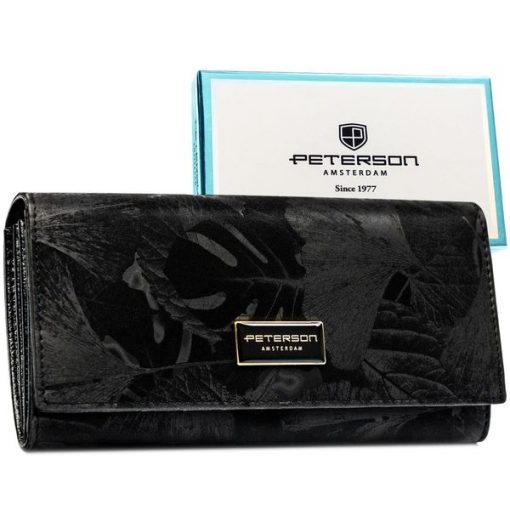 Duży portfel damski ze skóry naturalnej i ekologicznej w czarnym kolorze Peterson PTN PS401-MLF
