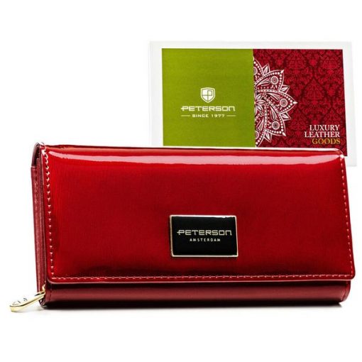 Modny portfel damski czerwony z lakierowanej skóry naturalnej PTN PH22-1-SAF Peterson