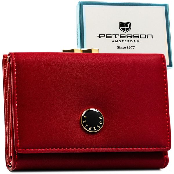 Elegancki, czerwony portfel damski ze skóry naturalnej i ekologicznej Peterson PTN PS15-09-MLF