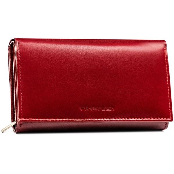 Czerwony portfel damski wykonany ze skóry naturalnej, zamykany na zatrzask PTN RD-21-NGV Peterson