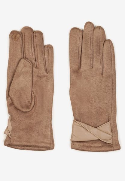 Ciemnobeżowe Eleganckie Rękawiczki z Bawełną i Wywiniętą Aplikacją przy Nadgarstku Sissemi