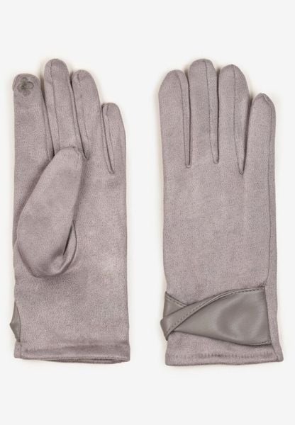 Szare Eleganckie Rękawiczki z Bawełną i Wywiniętą Aplikacją przy Nadgarstku Sissemi