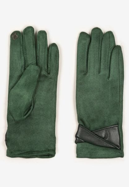 Zielone Eleganckie Rękawiczki z Bawełną i Wywiniętą Aplikacją przy Nadgarstku Sissemi