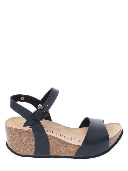 – materiał wierzchni ze skóry syntetycznej – zapięcie: sprzączka- noski: otwarte – skórzana wkładka: ergonomicznie uformowana – forma obcasa: koturny- podeszwa: antypoślizgowa – wyprodukowano w Hiszpanii