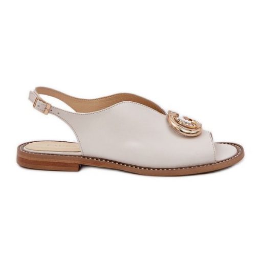Skórzane Sandały Na Płaskim Obcasie Z Ozdobą Laura Messi 2865 Jasnobeżowe beżowy
