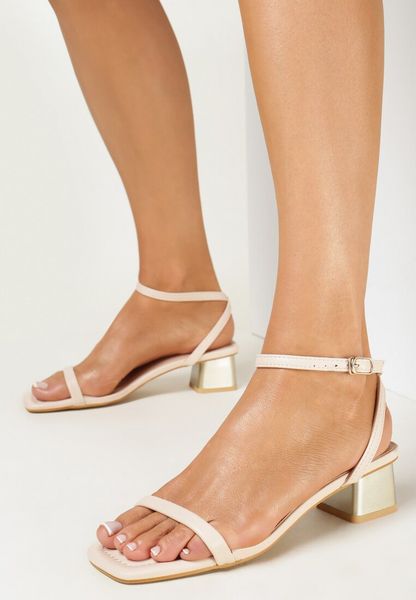 Beżowe Sandały z Cienkimi Paseczkami na Metalicznym Słupku Misan