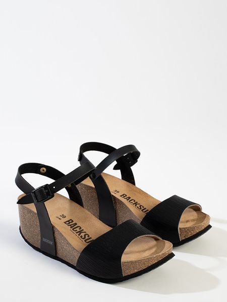 – materiał wierzchni ze skóry syntetycznej- zapięcie: sprzączka- noski: otwarte- skórzana wkładka: ergonomicznie formowana- forma obcasa: koturny- podeszwa: antypoślizgowa- wyprodukowano w Hiszpanii