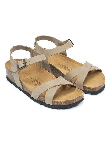 – skóra nubukowa- zapięcie: sprzączka- noski: otwarte- skórzana wkładka: ergonomicznie formowana- podeszwa: antypoślizgowa
