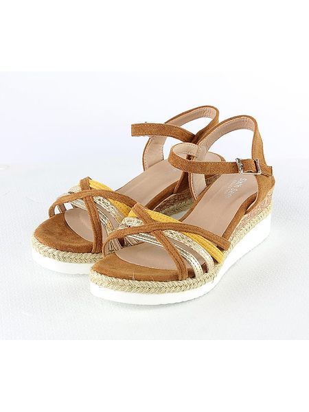 – zapięcie: sprzączka- noski: otwarte- detale: metalicznie błyszczące elementy- forma obcasa: koturny- podeszwa: antypoślizgowa