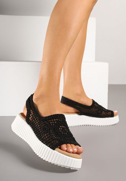 Czarne Ażurowe Sandały na Grubej Podeszwie z Tłoczeniami Tanarila