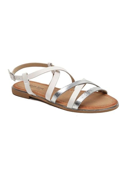 Srebrno-Białe Klasyczne Sandały na Płaskiej Podeszwie z Brokatem i Sprzączką na Kostce Uliara