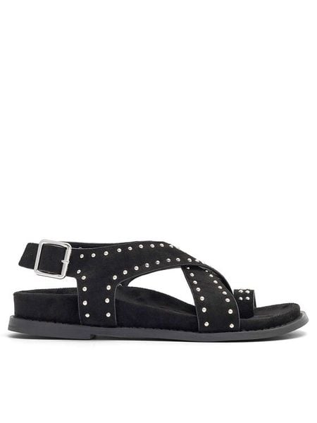Czarne Sandały na Płaskiej Podeszwie z Cyrkoniami Zapinane przy Kostce Elltiana