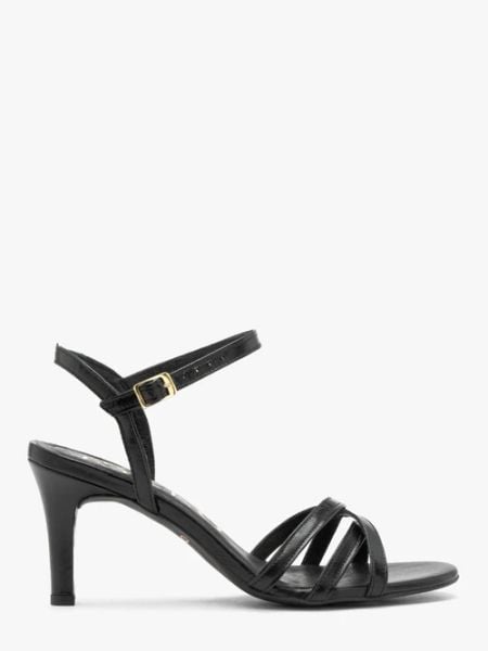 Czarne sandały na szpilce z linii RYŁKO.Model wykonany ze skóry licowej.Podszewka i wyściółka skórzana.Szpilka oblekana o wysokości 7,5 cm.Wysokość obcasa uśredniona dla rozmiaru 37.But posiada ozdobną klamerkę w kolorze złotym.Dystrybutor: Brawo Sp. z o.o. ul. Dworcowa 19, 34-130 Kalwaria Zebrzydowska; [email protected] pochodzenia: POLSKA
