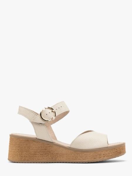 Sandały w kolorze kremowym z linii RYŁKO RELAX.Model wykonany ze skóry licowej.Podszewka i wyściółka skórzana.Ozdobny klin + platforma o wysokości 6 cm.But posiada ozdobną klamerkę w kolorze złota. Dystrybutor: Brawo Sp. z o.o. ul. Dworcowa 19, 34-130 Kalwaria Zebrzydowska; [email protected] pochodzenia: POLSKA