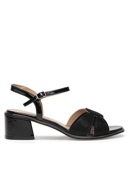 Czarne Sandały z Wkładką z Imitacji Skóry na Słupku Zapinane Przy Kostce Kaloella