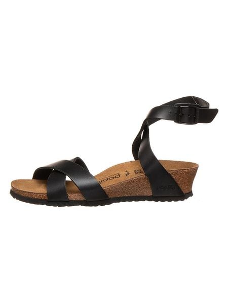 Papillio Skórzane sandały „Lola” w kolorze czarnym na koturnie rozmiar: 38