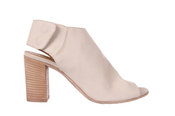 Sandały zabudowane na słupku marki Bayla. Cholewki wykonane z miękkiej skóry naturalnej w kolorze beżowym. Buty są lekkie, wygodne i pięknie prezentują się na nodze.- z boku zapinane na zatrzask ułatwiający zakładanie obuwia- fason typu peep toe- miękkie wkładki- doskonała jakość materiałów i precyzyjne wykonanie