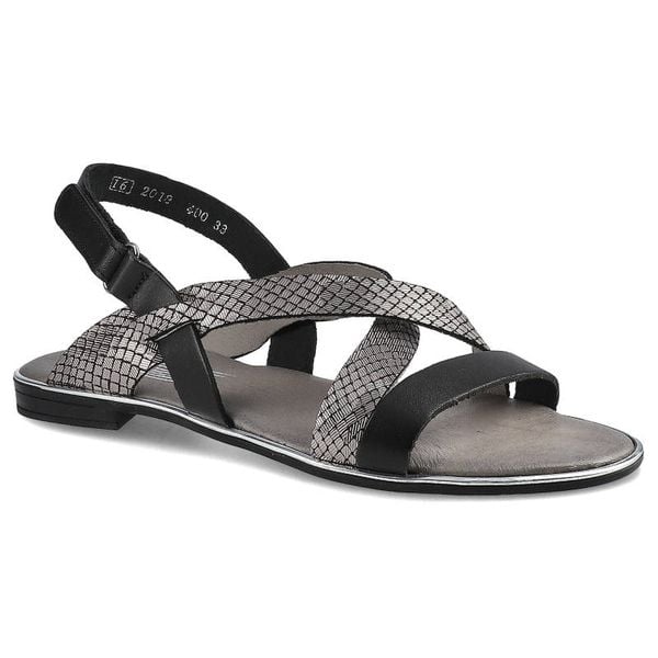 Sandały damskie Lemar, zapinane na rzep i ze skóry naturalnej, czarno-srebrne, 40033