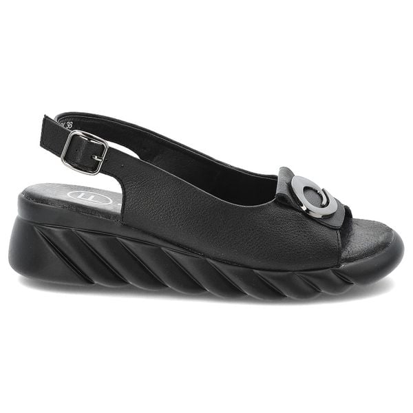 Sandały damskie Filippo, skórzane eleganckie na koturnie z ozdobą ze sprzączką, czarne, DS7011-25-BK