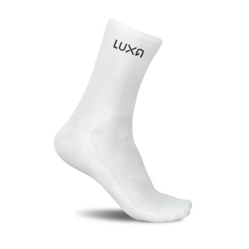 Klasyczne jednokolorowe czarne i białe skarpety rowerowe z logo Luxa.