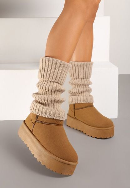 Ciemnobeżowe Skarpety Getry Ozdobione Wywinięciem Ilarael