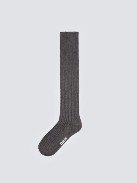 Podkolanówki o prążkowanym splocie w szarym kolorze. Wykonane z bardzo miękkiej przędzy z dodatkiem wełny.