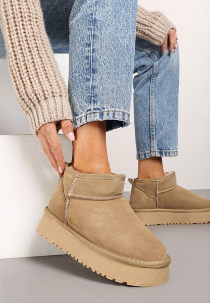 Beżowe Zamszowe Śniegowce na Grubej Podeszwie Mazinae