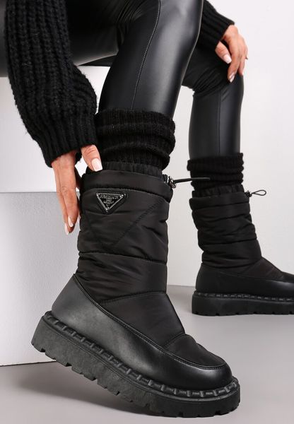 Czarne Śniegowce na Niskiej Platformie z Ozdobnym Pikowaniem i Ściągaczem Raballa