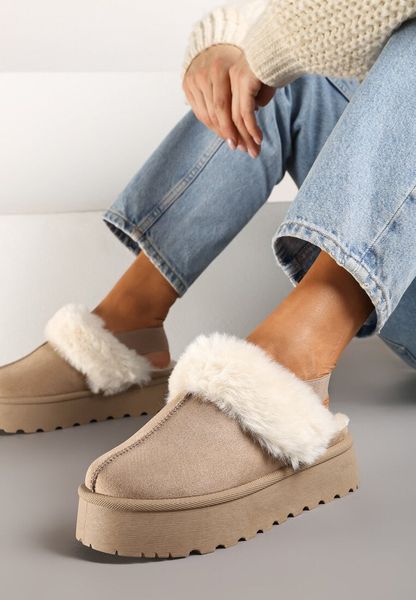Beżowe Śniegowce na Niskiej Platformie z Odkrytą Piętą i Futrzanym Zdobieniem Virezi
