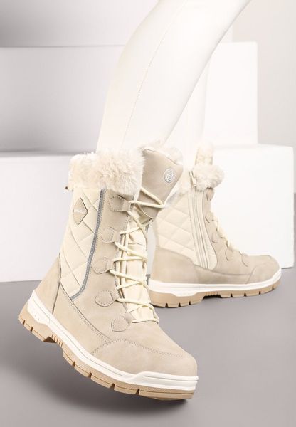 Beżowe Śniegowce z Pikowanym Przeszyciem i Futerkiem na Grubej Podeszwie Amartina