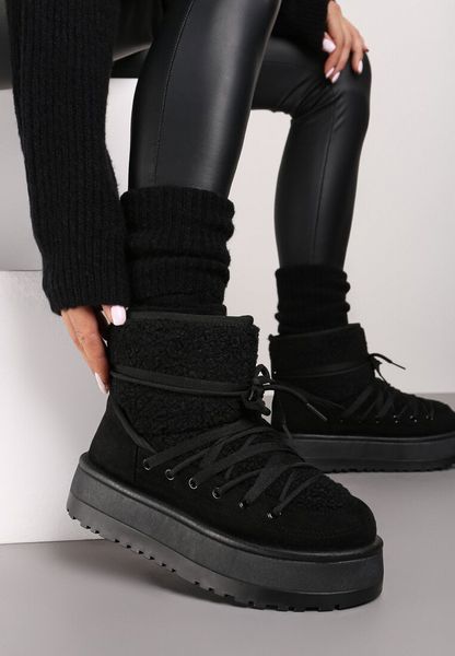 Czarne Śniegowce na Platformie Ozdobione Futerkiem i Paskiem na Pięcie Inarine