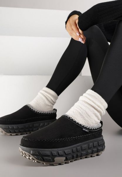Czarne Niskie Śniegowce na Grubej Tłoczonej Podeszwie Arevire