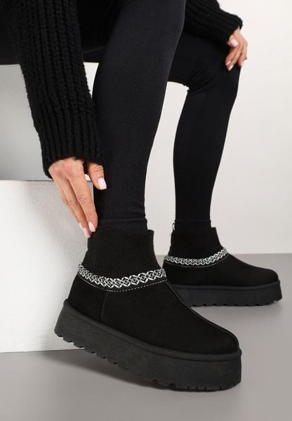Czarne Śniegowce VICES na Grubej Podeszwie z Haftem i Skarpetkową Cholewką Enantia