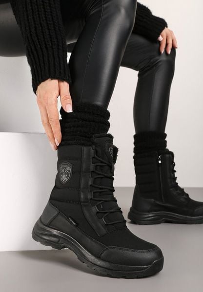 Czarne Śniegowce za Kostkę z Sznurowaniem Lupines