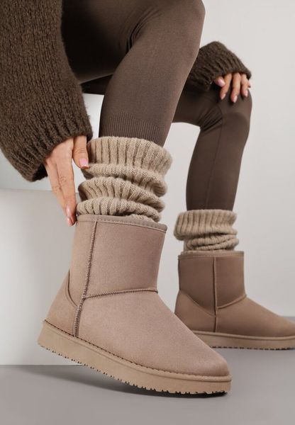 Ciemnobeżowe Śniegowce Ozdobione Przeszyciem Retila