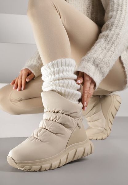 Ciemnobeżowe Śniegowce na Platformie z Tłoczeniem i Pikowaną Cholewką Resisia