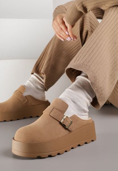 Beżowe Niskie Śniegowce na Grubej Podeszwie Zdobione Sprzączką Vetiare