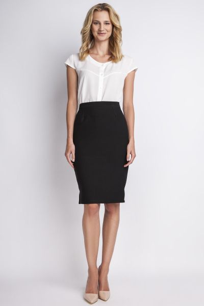 Ołówkowa Czarna Spódnica Midi z Wysokim Stanem