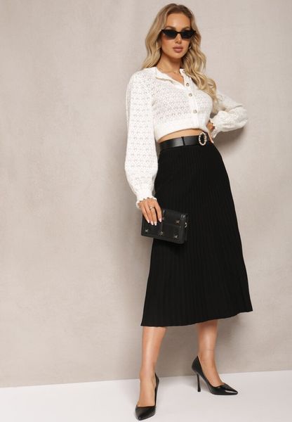 Czarna Midi Plisowana Spódnica z Gumką w Pasie i Paskiem z Ekoskóry Juara