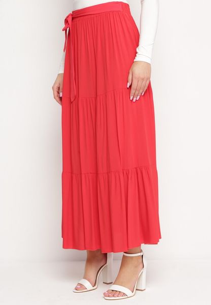 Czerwona Wiskozowa Spódnica Maxi Rozkloszowana z Paskami Saosa