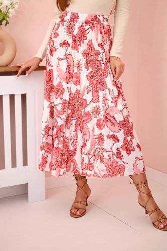 Spódnica damska plisowana w kwiaty różowa