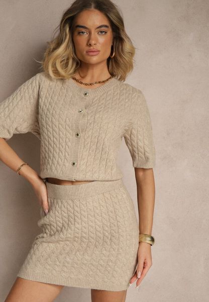 Beżowa Spódnica Sweterkowa z Wełną High Waist Selzeki