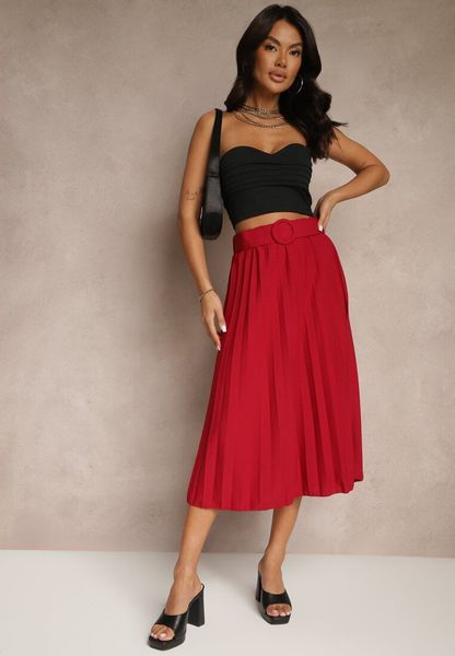 Czerwona Spódnica Plisowana z Ozdobnym Paskiem Sanitha