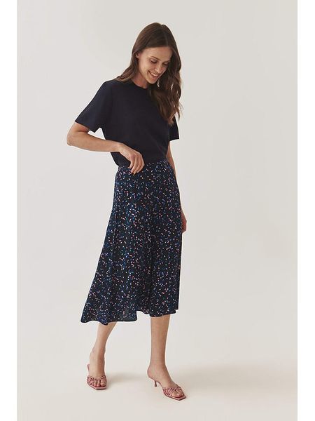 – czysta wiskoza- wysokość pasa: high waist- pas / ściągacz: elastyczny- krój: litera A- wzór: na całości