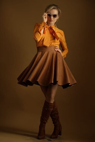 Brązowa spódnica z koła z wysokim stanem z delikatnej dzianiny a’la zamsz Najpiękniej kręcą się spódnice takie, jak ta – z pełnego koła.Wysoki stan, który podkreśla talię. Z tyłu zapinana na suwak. Spódnica jest jednowarstwowa.Wykonana została z lekkiej i elastycznej dzianiny o strukturze zamszu. Dzianina jest delikatna w dotyku, nie mnie się i ładnie układa. […]