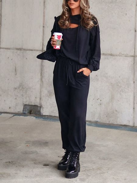 W zestawie:Bluza:- dekolt: okrągły- krój: luźny- look: jednokolorowySpodnie dresowe:- pas / ściągacz: elastyczny- krój: luźny- look: jednokolorowy