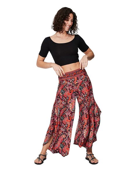 – pas: marszczony- zakończenia nogawek: dzwony, prążkowany ściągacz- krój: prosty- wzór: orientalnyUwaga: Na metkach odzieży tej marki znajdują się rozmiary francuskie. Rozmiarówka została przez nas przeliczona. Podane do wyboru warianty rozmiarów odpowiadają standardowym europejskim rozmiarom konfekcji. Prosimy zapoznać się z zamieszczonym objaśnieniem rozmiarów.